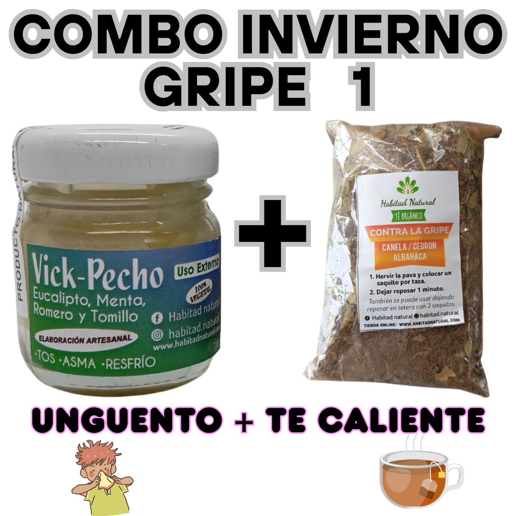 Descubre el Combo Ungüento Vick Pecho Habitad Natural para combatir resfriados, tos y catarro. Este producto combina la efectiva acción del ungüento Vick con un delicioso té caliente que te ayudará a sentirte mejor en momentos de malestar.